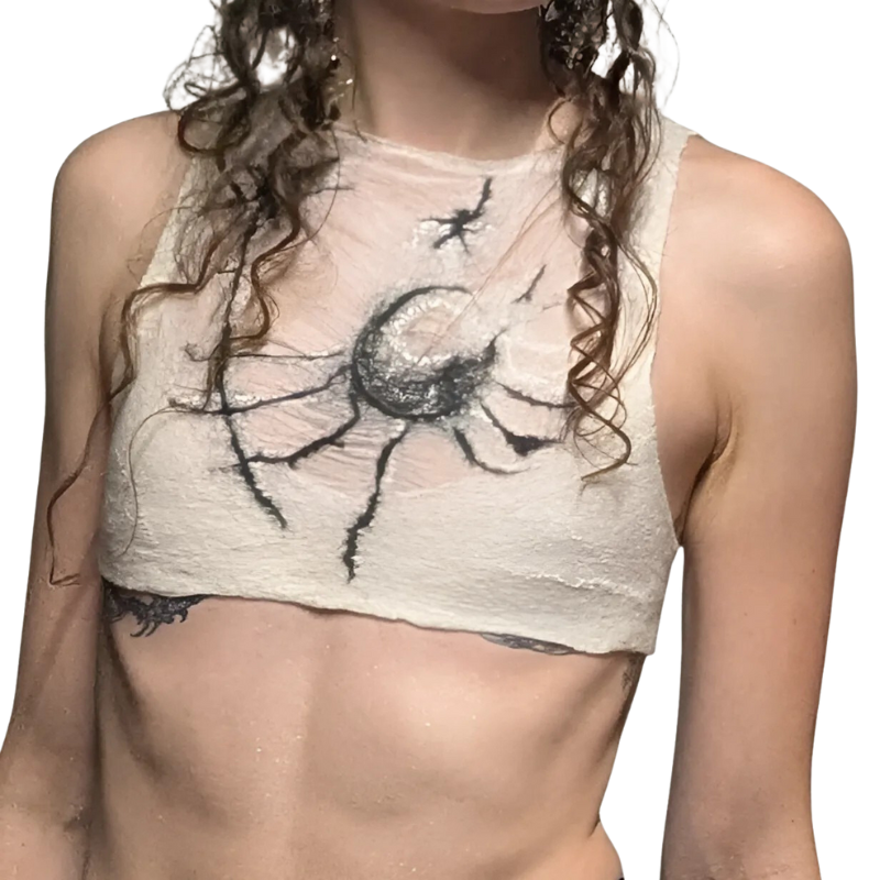 Un projet de lingerie en laine mérinos feutrée, pensé pour les femmes ayant une mastectomie ou une reconstruction. Chaque soutien-gorge est retissé avec soin, à partir de la singularité du corps traversé.